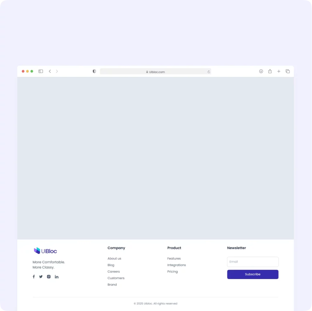 More Comfortable. More Classy. Company About us Blog Careers Customers Brand Product Features Integrations Pricing Newsletter © 2025 UIbloc. All rights reserved