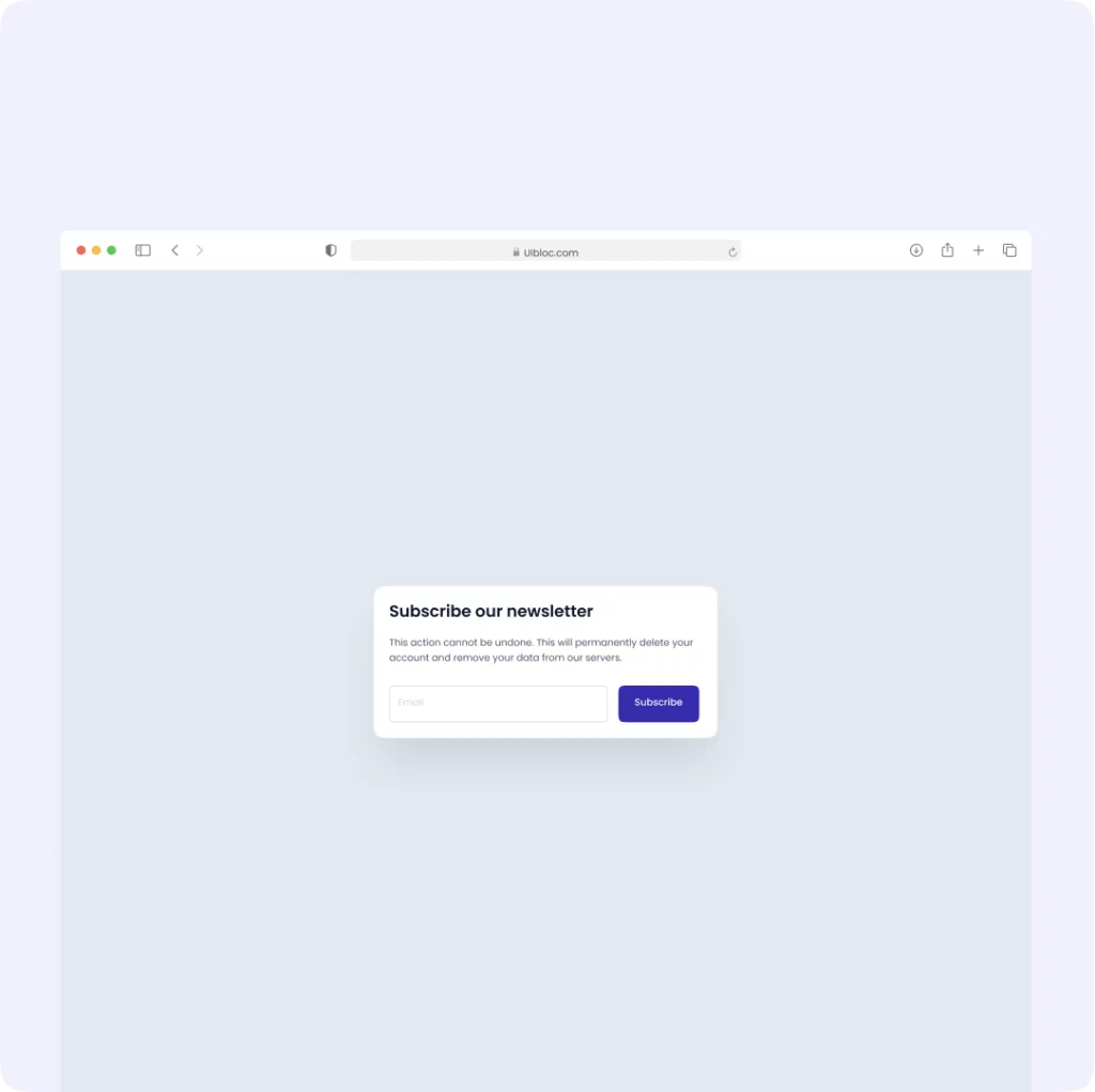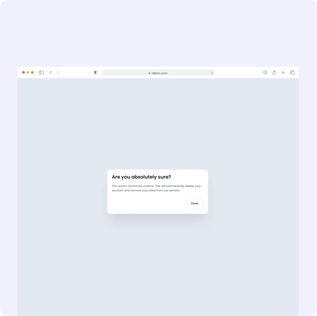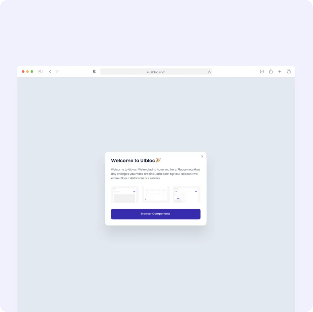 Welcome to UIbloc 🎉 Welcome to UIbloc! We’re glad to have you here. Please note that any changes you make are final, and deleting your account will erase all your data from our servers. Browse Components
