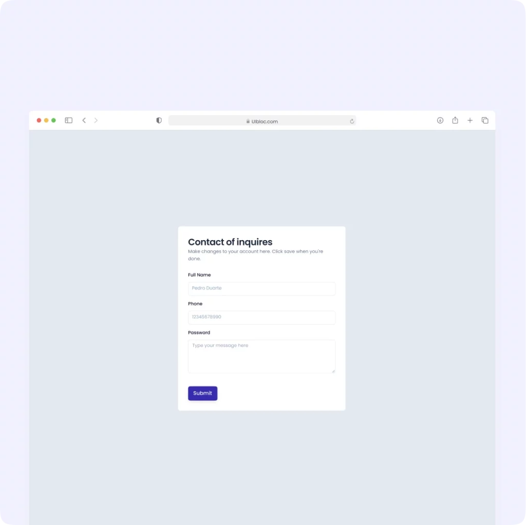 Contact of inquires Make changes to your account here. Click save when you’re done.